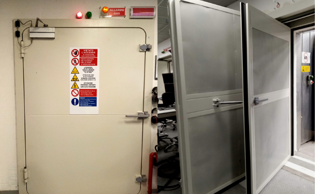 n.2 Puertas Acústicas y a prueba de fuego dobles con un solo gozne.