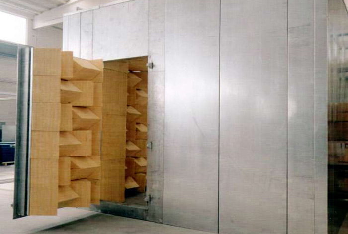 Hemi-cámara anecoica para electrodomésticos prueba acústica. Construcción modular para un fácil desmontaje. Frecuencia de corte 125 Hz. Materiales no absorbentes de combustión. Iluminación interna incandescente. Hacer una ventilación a prueba de sonido para no dañar el funcionamiento de la cámara acústica.