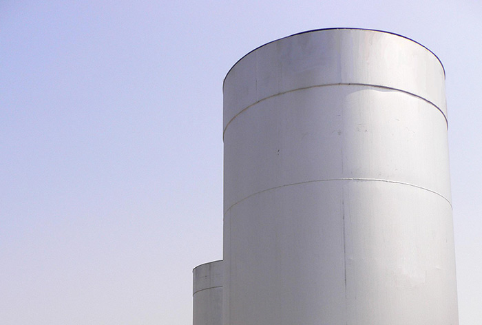 Banco de pruebas de motores de misiles. Silenciadores con deflectores para la entrada de aire de combustión y ventilación de gran sección para reducir al mínimo las caídas de carga. Silenciador y chimenea de extracción con la forma adecuada para obtener una mezcla óptima. Alto rendimiento acústico para reducir las molestias al vecindario.