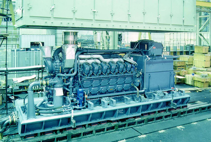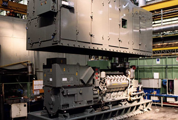 Gabinetes acústicas para grupos de generadores de fragatas T45. La instalación en el juego del gen fija por el montaje anti-vibratorio especial. Intercambiador de calor interno de agua de mar. Accesibilidad lateral total por medio de puertas con bisagras de apertura rápida. Resistente a los golpes. Fuego apriete pasajes de cable.